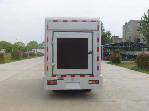 该车是用于广告宣传的专用车辆。驾驶室左侧装有可升降LED全彩屏,内置伸缩舞台板;驾驶室右侧上方装有LED单色条屏,下方为滚轴系统。左侧LED屏外选装防护玻璃;后部可选装通风口,不加LED屏等结构。选装新前围.选装前格栅颜色和雾灯底座颜色。ABS型号为YF9,生产企业为武汉元丰汽车电控系统有限公司。 |