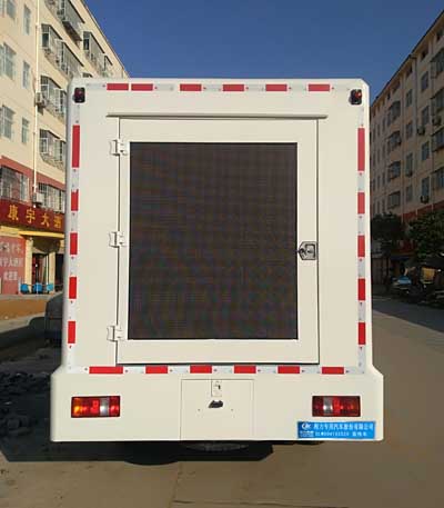 该车是用于广告宣传和科普宣传的专用车辆.两侧均可选装:LED升降或者不带升降屏,滚轴灯箱,条屏,活动舞台; 后部可选装:通风口,后开门;侧面以及后部为裙边结构, 侧面下沿离地高度420mm;后部下沿离地高500mm;不选装天窗时高度为3050mm.仅选用底盘轴距3300mm.ABS系统控制器型号/生产企业:XH-KQ4S4M-E01/广州市西合汽车电子装备有限公司;4S3M/威伯科汽车控制系统(中国)有限公司.随底盘选装驾驶室. |