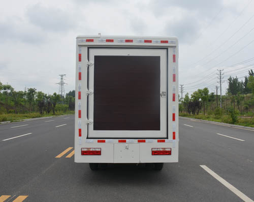 该车是用于科普广告宣传的专用车辆。车厢侧面可选装有可升降装置的LED全彩屏,选装内置伸缩舞台板;车辆右侧上方选装LED单色条屏,下方选装滚轴系统。左侧LED屏外选装防护玻璃;后部可选装不同开门形式,可选装通风口、不加LED屏等结构。选装导流罩。侧、后防护为裙板结构与车厢连为一体,后部下沿离地高490mm。选装逃生天窗,整车高度为3100mm;选装高顶车厢,整车高度为3300mm。选装不同车厢造型。ABS控制器型号及生产企业:CM4XL-4S/4M,广州科密汽车电子控制技术股份有限公司。随底盘选装前围面板、进气格栅、灯具及左右后视镜的驾驶室,选装排半驾驶室。选装框架式组合视镜及补盲镜。 |