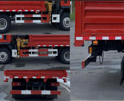 ABS型号:VIE ABS-II,CM4XL-4S/4M,3550X-1010;ABS生产企业:浙江万安科技股份有限公司,广州瑞立科密汽车电子股份有限公司, 东科克诺尔商用车制动系统(十堰)有限公司;发动机净功率值:YCY24140-60/99,YCY30165-60/117,D25TCIF1/105,D30TCIF1/120;选装描述:随底盘选装排半驾驶室;选装后部支腿;选装吊机座椅位置以及爬梯;选装货箱侧面样式;发动机/油耗值(L/100km)对应关系为:YCY24140-60/21.1,YCY30165-60/21.1,D25TCIF1/21.1,D30TCIF1/21.1;所用材料材质、连接方式以及后部防护装置的主要尺寸参数(断面尺寸和离地高度):侧、后防护材料均为Q235;侧防护螺栓连接,后防护螺栓+焊接连接;后防护截面尺寸(宽赘?:60?20,离地高度:480mm;起重机型号:SQ5SK3Q;起重机质量(kg):2260;起重机最大起升载荷(kg):5000;其他说明:该车型可选装ETC车载装置;车长/轴距/后悬对应关系:6130/3300/1610,6460/3450/1790,6790/3600/1970; |