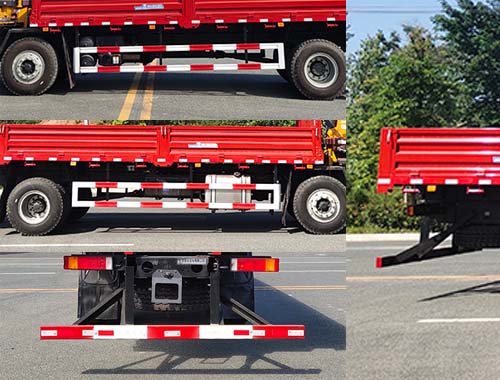 选装栏板样式,随底盘选装保险杠、翼子板,选装后视镜,选装车门下饰板,选装卧铺侧窗,选装绿玻璃,选装平顶驾驶室,选装导流罩。侧防护采用冷弯型钢/Q235-B,螺栓连接;后防护采用冷弯型钢/Q235-B,焊接连接。后防护截面高度尺寸120mm, 截面宽度尺寸50mm,下边缘离地高度500mm。ABS型号/企业:ABS-E 4S/4M/威伯科汽车控制系统(中国)有限公司,CM4XL-4S/4M/广州瑞立科密汽车电子股份有限公司。安装具有卫星定位功能的行驶记录仪。直臂吊机型号/最大起升载荷(kg)/吊机重量(kg)为:SQS200/8000/3500,SQS300/12000/4600。发动机型号/油耗申报值对应关系为:YCS06245-60A/30.3L/100km,YCS06270-60/30.3L/100km。该车型可选装ETC车载装置。 |