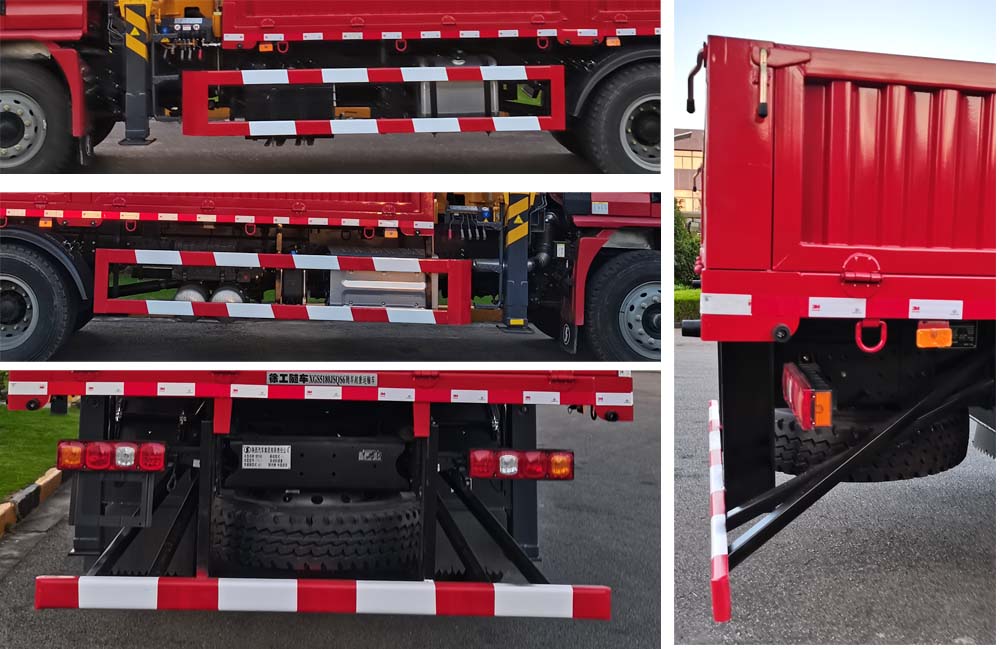 ABS型号:ZQFB-V;ABS生产企业:西安正昌 电子有限责任公司;安装有具有卫星定位功能的行驶记录仪;选装部件名称及其相关描述:选装栏板形式,选装操纵座椅形式,选装后支腿,随底盘选装驾驶室样式;发动机/油耗值(L/100km)对应关系为:WP6H245E61/26.24(L/100km),WP4.6NQ220E61/26.53(L/100km),YCS06245-60/26.58(L/100km);所用材料材质、连接方式以及后部防护装置的主要尺寸参数(断面尺寸和离地高度):侧防护材料Q235,侧防护连接方式为螺栓连接,后防护离地高度480mm,截面高度120mm,截面宽度50mm,后防护材料Q235,连接方式焊接;起重机型号:SQS200;起重机质量(kg):3370;起重机最大起升载荷(kg):8000;专用功能及装置描述:随车起重机主要由一个在基座上方的转台和一个固定到转台顶端的臂架系统组成的动力驱动的起重机.通常安装在汽车上,用于货物的装卸;;其他说明:选装ETC车载装置; |