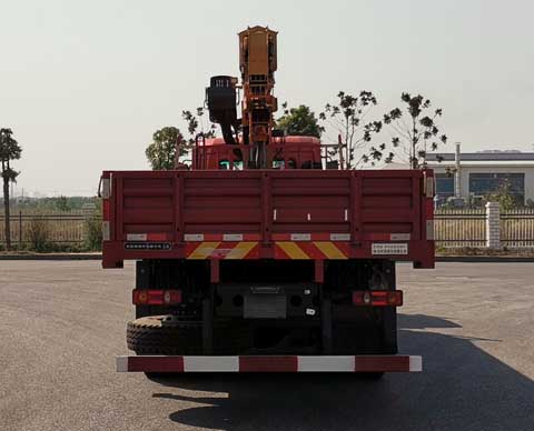 随底盘选装驾驶室外观及不带遮阳板,选装货箱结构及上装操作座椅布置,该车的专用装置为货箱和吊机,用于货物的起吊和托运.直臂式吊机型号/最大起升载荷(kg)/吊机重量(kg)/整备质量(kg)分别为:SQ8.0SA4/10000/5100/17100;SQS300-4/8000/3600/15600;整车长/轴距/后悬对应关系:11990/5900+1350/3300,11990/5700+1350/3500,10600/4750+1350/3060,9980/4350+1350/2840;侧防护及后防护材质均为Q235,连接方式:侧防护采用焊接连接后防护螺栓连接,后部防护断面尺寸为120?0mm,后部防护离地高度(mm):460.装ABS,ABS型号/生成厂家:3631010-C2000/东科克诺尔商用车制动系统(十堰)有限公司.该车安装带有卫星定位功能的行驶记录仪;发动机D6.7NS6B320,D6.7NS6B260,D6.7NS6B230,B6.2NS6B260,B6.2NS6B230,YCS06270-60,YCS06245-60,YCS06245-60A对应油耗值均为30.5L/100km,该车型可选装ETC车载装置 |
