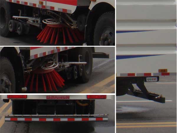 随底盘选装驾驶室;选装吸盘位置和扫刷数量,选装垃圾箱外观,选装后部结构;侧面防护装置与工作装置相干涉,故豁免;后下部防护装置材料材质:Q235,连接方式:焊接加螺栓连接,断面尺寸(宽赘?:50?00(mm),离地高度:370mm;ABS型号为3631010-C2000,生产厂家为东科克诺尔商用车制动系统(十堰)有限公司. |