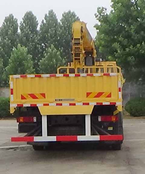 起重机型号、额定起升质量及重量分别为(Kg): SQS400:16000,6020,SQZ400:16000,5200. 仅适用发动机型号MC07.28-50、MC07.31-50、MC07.34-50和MC07.35-50油耗值分别为39.1、39.2、39.4和39.5.侧、后防护装置为金属护栏,材质Q235,连接方式为螺栓连接,后部防护断面高度:120mm,断面宽:60mm,离地高度:480mm.选装上车起重机型式为折臂式起重机,选装操纵座椅形式,选装后支腿.随底盘选装驾驶室和箱板结构. 已加装具备卫星定位功能的行驶记录仪,ABS系统型号为4460046300,生产企业为威伯科汽车控制系统(中国)有限公司.随底盘加装限速装置,限速89km/h.随车起重机主要由水平支腿,垂直支腿,转向基座和起重吊臂组成,主要用于实现货物自行装卸的起重举升. |