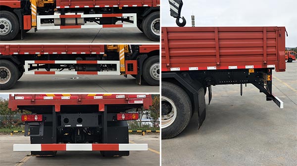 随底盘选装遮阳罩,选装后视镜、遮阳罩、前面板、前保险杠及前部灯具;选装工作座椅及后支腿,选装箱板结构,起重机型号/起重机质量(Kg)/最大起升载荷(Kg)对应关系:QYS-6.3/3000/6300。侧、后防护装置材料均为Q235,侧防护螺栓连接;后防护焊接连接,后防护离地高度为490mm,截面高度和厚度为120mm?0mm。发动机油耗申报值(L/100km)均为25.7;该车安装具有卫星定位功能的行驶记录仪;ABS型号为ABS-E 4S/4M,生产厂家为威伯科汽车控制系统(中国)有限公司;ABS型号:VIE ABS-II,生产厂家:浙江万安科技股份有限公司;ABS系统控制器型号为:3550X-1010,生产厂家:东科克诺尔商用车制动系统(十堰)有限公司;ABS型号:CM4XL-4S/4M,生产厂家:广州瑞立科密汽车电子股份有限公司。 |