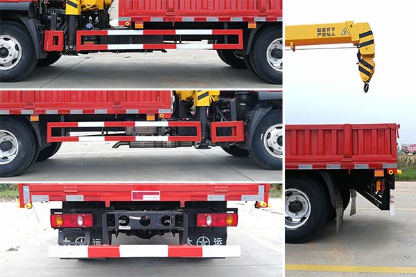 随底盘选装遮阳罩、前面板、前保险杠、前组合灯及前雾灯,选装排半驾驶室。选装货箱外观及后部支腿,选装工作座椅及安装位置。整备质量/直臂式吊机型号/吊机自重/额定起升载荷:3425kg/SQ2SK1Q/875kg/1000kg。发动机YN33CRE1;YNF40E1;YN38CRE1;YC4FA120-50;YC4D140-50;YC4E160-56,D30TCIE4油耗值(L/100km)均为12.6。侧、后防护装置材料均为Q235,侧防护螺栓连接;后防护焊接连接,后防护离地高度为335mm,截面高度和厚度为100mm?0mm。1、ABS型号:VIE ABS-II,厂家:浙江万安科技股份有限公司;2、ABS控制器型号:3550X-1010,厂家:东科克诺尔商用车制动系统(十堰)有限公司;3、ABS型号:CM4XL-4S/4M,生产厂家:广州瑞立科密汽车电子股份有限公司。尺寸对应关系为:5995=3300+1300+1395,5995=3450+1300+1245,5995=3600+1300+1095,5995=3300+1225+1470,5995=3450+1225+1320,5995=3600+1225+1170. |