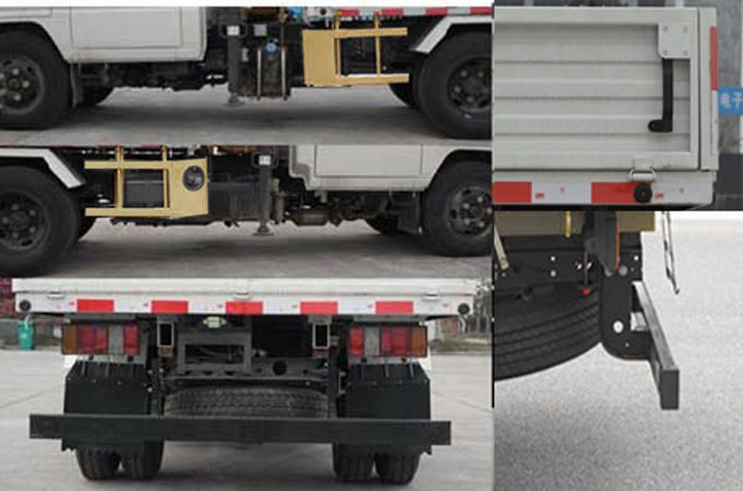 1.ABS系统型号:APG3550500A,ABS系统生产厂家:浙江亚太机电股份有限公司。2.随底盘选装前照灯、前雾灯、前位灯、前转向灯、前脸、前保险杠。3. 选装折叠臂式起重机。直臂式起重机型号为SQS42,质量为1200千克,最大起升载荷为890千克;折叠式起重机型号为SQZ32,质量为995千克,最大起升载荷为1180千克。选装直臂式起重机时,整车宽度为2060毫米,整车高度为2900毫米,整备质量为3530千克,额定载质量为640千克;选装折叠臂起重机时,整车宽度为1890毫米,整车高度为2590毫米,整备质量为3325千克,额定载质量为845千克。4.侧面防护装置材料:Q235,连接方式:螺栓连接;后下部防护装置材料:Q235,连接方式:螺栓连接,断面尺寸:100毫米?5毫米,离地高度:430毫米。 |