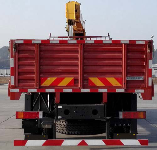 随底盘选装前围,侧围,前保险杠(包括前部灯具)及车门覆盖件.前雾灯为选装件.选装保险杠.选装遮阳板.选装箱板结构.选装上/中座椅操作,直臂式吊机:型号/吊机质量(kg)/最大起升载荷(kg)/整备质量(kg)/额定载质量(kg)分别为:1.(SQS200,SPS20000,URV800)/3950/8000/14500/10305;2.(SQS250,SPS25000)/4200/10000/15800/9005.总长(mm)/货箱长(mm)/轴距(mm)/后悬(mm)对应关系:一.10500/6500/2150+3950/2940; 二.11280/7600/2150+4650/3020;三.11480/7800/2150+4850/3020;四.11690/8300/2150+5050/3030;五.11990/8500/2150+5250/3130.防护栏材料材质:侧护栏和后护栏材料材质都为Q235;连接方式:侧护栏和后护栏连接方式都为螺栓连接;后防护断面尺寸:50mm?20mm;后防护离地高度:400mm.安装具有卫星定位功能的行驶记录仪.ABS系统生产厂家:东风电子科技股份有限公司,型号:3550X-1010.YC6JA240-50发动机对应的油耗值为37.3L/100km.货箱尾部可选装爬梯. |