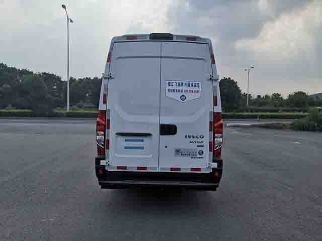 | ABS型号:BOSCH ABS9、BOSCH ESP9;ABS生产企业:BOSCH公司;发动机净功率值:发动机F1AE8481D最大净功率93KW;发动机F1CE8481K最大净功率 123kW;选装描述:选装同等功率的制冷机组及备电,选装制冷机组顶置或底置,制冷机底置时整车高度2755mm,2650mm;内部可选装异型导轨、导风槽;随底盘不选装前雾灯和选装侧拉门。选装轮罩时整车宽度为2022mm。选装铝合金车轮,选装铝合金车 轮时整车宽为2040mm。后轮距仅为1538mm;发动机/油耗值(L/100km)对应关系为:F1CE8481K/10.7;F1AE8481D/11.3;所用材料材质、连接方式以及后部防护装置的主要尺寸参数(断面尺寸和离地高度):侧防和后防与车身为一体,材质为金属,离地高度为411 mm;最后排座椅后方安装具有足够强度的板式隔离装置;车厢顶部封闭且不可开启;专用功能及装置:该车装备有隔热结构的车厢和制冷装置,用于冷藏运输;其他说明:选装ETC车载装置; |