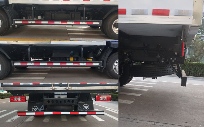 货厢顶部封闭不可开启.侧面防护装置的所用材料材质为冷板B-2.0-GB/T708,后下部防护装置的所用材料材质为异型管20-D-1-100?0?,支架材料为热板A-6/Q235A,连接方式为螺栓连接,位置不可调整,后部防护装置的断面尺寸为100?0mm,离地高度为400,470mm.ABS型号为CM4XL-4S/4M,生产厂家为广州瑞立科密汽车电子股份有限公司,发动机ISF3.8s5154,WP3NQ160E50对应油耗值分别为11,4,10,8L/100km.选装同等功率不同造型的制冷机外观照片.选装带导流罩,选装侧面双层防护,选装无侧开门货厢风格,选装新款后号牌板,选装无裙边结构货箱,选装带裙边结构货箱.选装液压尾板,后下部防护装置的材料为Q235,支架材料为Q235,连接方式为螺栓和焊接组合连接,后部防护装置的断面尺寸为φ115mm,离地高度为430mm,后防护和液压尾板联动,避免尾板工作时产生干涉,尾板质量为350Kg,尾板收起状态的水平长度280mm.选装前部灯具,选装昼间行驶灯. |