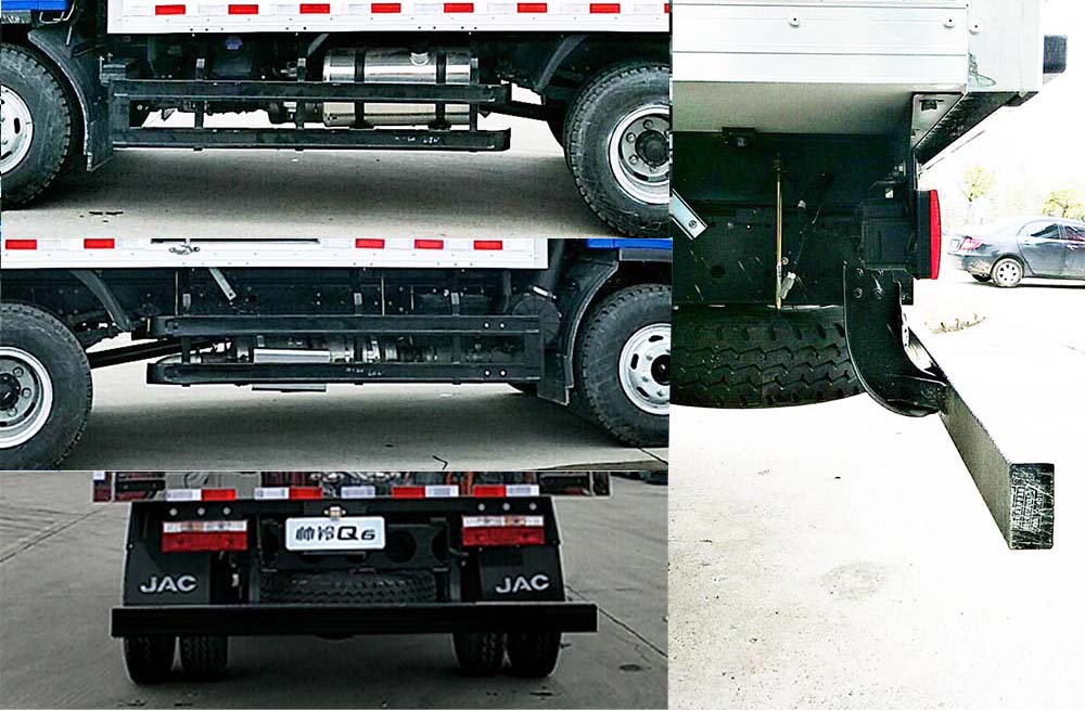 1.车厢顶部封闭不可开启;2.选装右侧不开门货厢和单开门货厢,选装不同厂家但制冷量相同的冷藏机组;3.发动机F3.8NS6B156对应的油耗申报值(L/100km)为11.4;4.侧面及后下部防护装置材料为Q235,连接方式为螺栓连接,后部防护装置断面尺寸(长卓?:120mm?0mm离地高度为490mm;5.ABS控制器型号/厂家:ABS 8/克诺尔商用车系统企业管理(上海)有限公司。6.选装不同型号的后视镜.7.可选装液压尾板,尾板收起状态的水平长度为280mm,当选装液压尾板时后部防护装置材料为510L,后部防护装置的断面尺寸(圆形)为:Φ115mm,离地高度为455/480mm,尾板质量为350Kg;选装铝合金轮辋 |