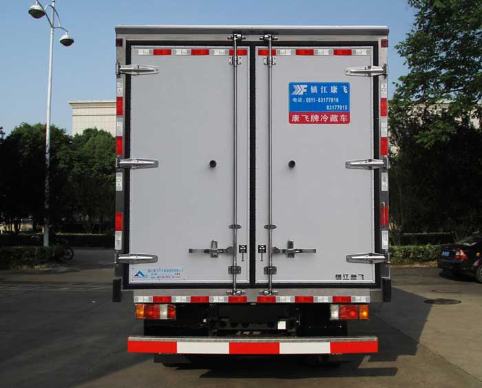 车厢顶部封闭,不可开启.可选装其它功率相同制冷机组,可选装底置制冷机组;选装侧门或不装侧门,车厢右侧和左侧均可选装侧门、选装单侧门、双侧门的侧门数量;选装普通侧门、对开侧门、联开侧门、侧拉门等侧门形式、侧门和后门选装明门杠或暗门杠的门锁形式; 所有选装引起的质量参数变化在3%以内.侧防护材料铝合金或Q235,后下部防护材料Q235, 侧防护和后防护与车辆均采用螺栓连接;后下部防护下边缘离地高度500mm,断面(高120mmX宽75mm);当选用液压尾板时,液压尾板收起状态的水平长度为280mm,尾板质量350kg,后下部防护与尾板悬臂螺栓连接,后下部防护材料Q235,后下部防护下边缘离地高度500mm,后防护截面为圆形,截面直径为120mm.发动机4KH1CN5HS净功率为94kW,油耗值为11.5L/100km.发动机4KH1-TCG51净功率为87kW,油耗值为11.5L/100km.发动机4KH1CN5HD净功率为95kW,油耗值为11.5L/100km;ABS及其控制器型号为:APG3550500A4,生产厂家为:浙江亚太机电股份有限公司.选装ETC. |