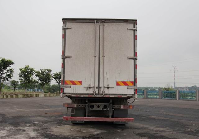 | 仅选用1800+4600mm,1800+4800mm,1800+5600mm轴距底盘。选装驾驶室,选装导流罩,选装导风板。选装遮阳罩,选装翼子板,选装后风窗。选装其他型号制冷机。选装货厢侧面单开门或不开门结构,选装平板厢体结构。车厢顶部封闭,不可开启。整备质量为11500kg,额定载质量为13370kg(2人),13305kg(3人);整备质量为12500kg,额定载质量为12370kg(2人),12305kg(3人)。外形尺寸长、后悬与底盘轴距对应关系:9995=1430+1800+4600+2165,10405=1430+1800+4600+2575,11180=1430+1800+4800+3150,12000=1430+1800+5600+3170。选装发动机MC07.24-50/MC07.28-50/MC07.31-50/MC07.34-50/MC07H.29-50/MC07H.32-50/MC07H.35-50时,油耗申报值为31.8L/100km;选装发动机WP7.270E51/WP7.300E51时,油耗申报值为31.7L/100km。该车可选装尾板,尾板质量为550kg,尾板收起水平长度为300mm,整车整备质量为11500kg或12500kg。侧面防护装置所用材料材质为Q235B,连接方式为螺栓连接。选装尾板时,选装六角形钢管后防护装置,所用材料材质为Q235,连接方式为螺栓连接+焊接,断面尺寸为120mm?05mm,离地高度为440mm;不选装尾板时,选装方形钢管后部防护装置所用材料材质为Q235B,连接方式为螺栓连接,断面尺寸为120mm?20mm,离地高度为490mm。ABS系统型号为4460046300,生产企业为威伯科汽车控制系统(中国)有限公司。安装带卫星定位功能的行驶记录仪。选装限速装置,限速89km/h。 |