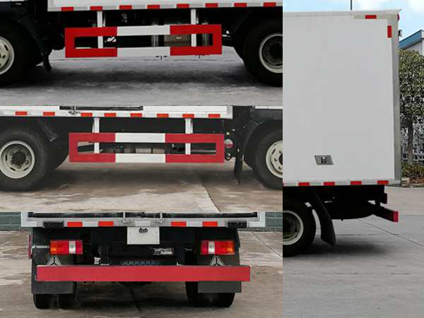 随底盘选装排半驾驶室;车厢顶部封闭,不可开启;选装不同外观的货箱;选装导流罩;可选装功率相当的其它型号的制冷机组;随底盘选装不同风格的面罩、灯具及保险杠后视镜;装单排驾驶室时,与货箱长4100,4000mm对应;装排半驾驶室时,与货箱长3800,3700mm对应;防护装置材料:Q235,连接方式:螺栓连接;后部防护装置断面尺寸(高卓?(mm):120?0,厚:5mm,离地高度:400mm;YN27CRE10/D30TCIE1/YN38CRE1/WP2.3NQ130E50/WP3NQ160E50/YNF40E1/YC4FA115-50/YC4FA130-50/YC4S160-50发动机油耗申报值(L/100km)对应为:11.4/11.4/11.3/11.3/11.4/11.4/11.3/11.3/11.4;ABS系统控制器型号/生产企业对应关系为:CM3XL-4S/3M(4SF)/广州瑞立科密汽车电子股份有限公司;XH-KQ4S3M-E01/广州市西合汽车电子装备有限公司。 |