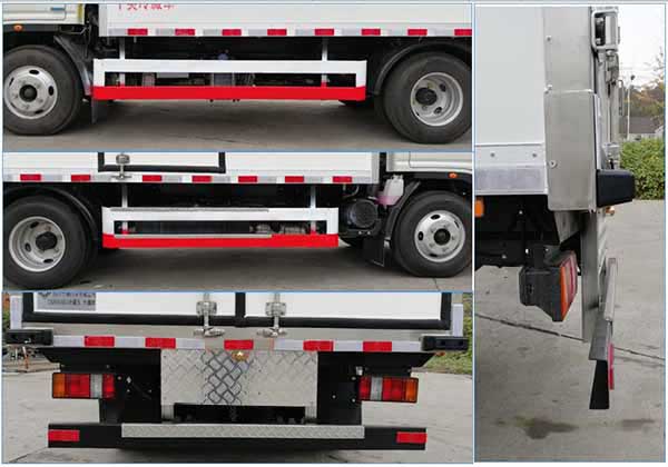 1.车厢顶部封闭,不可开启.2.选装功率相似的其他厂家型号制冷机组,选装的制冷机组外观式样见选装照片,选装相似功率的制冷机组时的外置冷凝器的外观形状可不相同.3.厢体两侧选装不同形式的侧开门,选装厢体两侧无侧开门的结构的厢体.4.发动机型号JX4D30A6H最大净功率:93kw,对应油耗申报值:10.4L/100km.5.侧面防护装置材料:Q235,连接方式:螺栓连接;6.后下部防护装置材料:Q235,连接方式:与车架焊接,断面尺寸:120毫米?0毫米,离地高度:380毫米.7.液刹ABS系统型号:APG3550500A,ABS系统生产厂家:浙江亚太机电股份有限公司;气刹ABS系统型号: VIE ABS-II,ABS系统生产厂家: 浙江万安科技股份有限公司. |