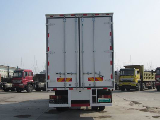 随底盘选装驾驶室。选装导流罩。货厢可选装单开门,双开门和不开门型式。可选装其它厂家功率相当的制冷机组。选装肉挂结构。可不选装后风窗。车厢顶部封闭,不可开启。外形尺寸长与后悬和底盘轴距参数一一对应。额定载质量与驾驶室准乘人数一一对应。侧面防护装置所用材料材质为Q235B,连接方式为螺栓连接;后部防护装置所用材料材质为Q235B,连接方式为螺栓连接,断面尺寸为120mm?20mm,离地高度为490mm。选装液压尾板,尾板质量465kg,尾板收起水平长度295mm。选装液压尾板时选装圆柱形后防护装置,所用材料材质为Q235B,连接方式为螺栓连接,断面尺寸为φ120mm,离地高度为490mm。ABS系统型号为4460046300,生产企业为威伯科汽车控制系统(中国)有限公司。发动机MC07.24-50对应的油耗申报值为26.1L/100km,发动机MC07.28-50对应的油耗申报值为26.1L/100km,发动机MC07.31-50对应的油耗申报值为26.1L/100km,发动机MC07.34-50对应的油耗申报值为26.1L/100km。安装具有卫星定位功能的行驶记录仪。选装限速装置,限速89km/h。该车型可选装ETC车载装置。 |