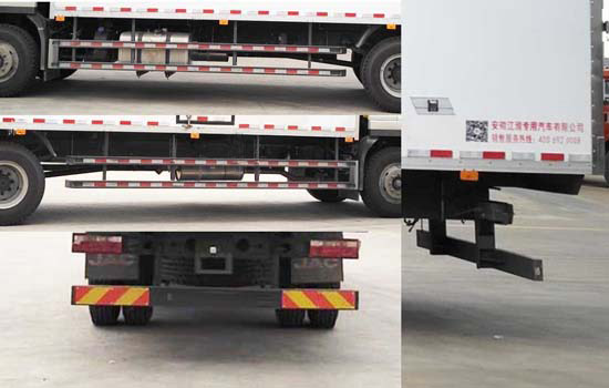 1.车厢顶部不可开启,选装不同样式的后视镜;2.选装侧面不开门货厢、单开门和双开门货厢,选装不同厂家但制冷量相同的冷藏机组;3.发动机B4.0NS6B195,D45TCIF1,B4.5NS6B220的油耗申报值(L/100km)为26.8,26.8,26.9;4.侧面部防护装置材料为Q235,连接方式为螺栓连接,后防护装置材料为QSTE650,连接方式为螺栓连接,后防护断面尺寸长卓砦?150mm?0mm,离地高度为470mm;5.ABS控制器型号/生产企业:CM4XL-4S/4M/广州瑞立科密汽车电子股份有限公司.6.随底盘选装平顶驾驶室,选装不带导流罩;7.选装限速装置时最高车速为89km/h;8.安装带卫星定位功能的行驶记录仪;9.随底盘选装不同样式的前围面板,进气格栅;该车型可选装ETC车载装置; |