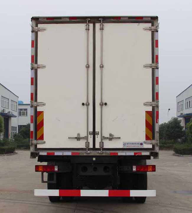 | 该车车厢顶部封闭.不可开启.侧面可选装单侧门或多个单侧门或对开侧门或无侧门结构.选装制冷量近似其它型号制冷机组,选装制冷机组安装位置,选装高顶驾驶室.后部选装升降尾板结构,尾板收起状态的水平长度为200mm.选装后整备质量变化在3%以内.侧面及后下部防护装置所用材料材质为Q235,侧防护为螺栓连接方式;后下部防护为螺栓连接方式,断面尺寸为120mm?0mm,离地高度为460mm.发动机/最大净功率(kw)/油耗值(L/100km)分别为: MC07.28-50/203/39.1,MC07.31-50/225/39.2,MC07.34-50/245/39.4,MC07.35-50/251/39.5;ABS系统型号为4460046300,生产企业为威伯科汽车控制系统(中国)有限公司。安装具有卫星定位功能的行驶记录仪。 |