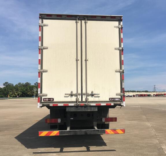| 车厢顶部封闭,不可开启.选装平顶驾驶室.选装不同结构的货厢.选装液压尾板.尾板收起状态的水平长度290mm.选装肉挂结构.可选装功率相当的其它型号的制冷机组.选装不同的冷机安装位置.侧防护的材质为R13钢,后下部防护装置的材质为SS400钢,连接方式为螺栓连接,后部防护离地高度330mm,断面尺寸为120?5mm.安装具有卫星定位功能的行驶记录仪.ABS生产厂家/型号:浙江万安科技股份有限公司/VIE ABS-II.油耗值37.3对应发动机CA6DL1-26E5,CA6DL1-29E5,油耗值39.3对应发动机CA6DK1-26E5.整车长度mm/货箱长度mm/轴距mm/后悬mm对应关系为:1.11995/9435/1900+4500+1350/2870;2.11000/8530/1900+4160+1350/2215.第三轴悬架型式为钢板弹簧和空气悬架复合式,不可提升.前轴选装盘式制动器.选装限速装置,限速89km/h.选装改前脸的驾驶室.选装不同结构的翼子板.尾板质量为550Kg. |