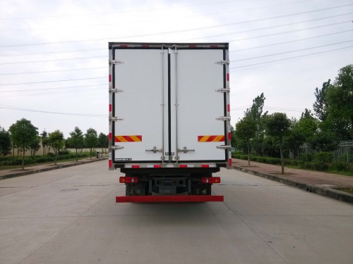 随底盘选装仅高度不同的驾驶室,驾驶室前脸选装扰流罩,选装侧窗,选装上车踏板型式,选装前雾灯,驾驶室顶部装饰灯为选装件,随底盘扩展高顶驾驶室.选装前面罩,选装不同结构的车门裙板,选装无车门裙板,选装与车身颜色相同的前保险杠,选装侧转向灯,选装前下视镜.选装左置空气滤芯器,选装不同材质油箱和油箱位置,选装储气筒位置.选装尾板,尾板质量为550kg,尾板收起状态时的水平长度为295mm;选装尾板时仅选用断面尺寸Φ121mm的后防护,后防护材质:Q235,连接方式:焊接,离地高度470mm;可选装其它厂家功率相当的制冷机组,侧防护:材质Q235,螺栓连接;后下防护:材质Q235,螺栓连接,断面尺寸120X60mm,离地高度460mm;厢体顶部封闭,不可开启,侧面选装开门和不开门;安装具有卫星定位功能的行驶记录仪.装有ABS,ABS型号及生产厂家:3631010-C2000/东科克诺尔商用车制动系统(十堰)有限公司,J ABS/焦作博瑞克控制技术有限公司,ABS-E 4S/4M/威伯科汽车控制系统(中国)有限公司.采用发动机ECU系统限速,选装限速功能,限速89km/h. |