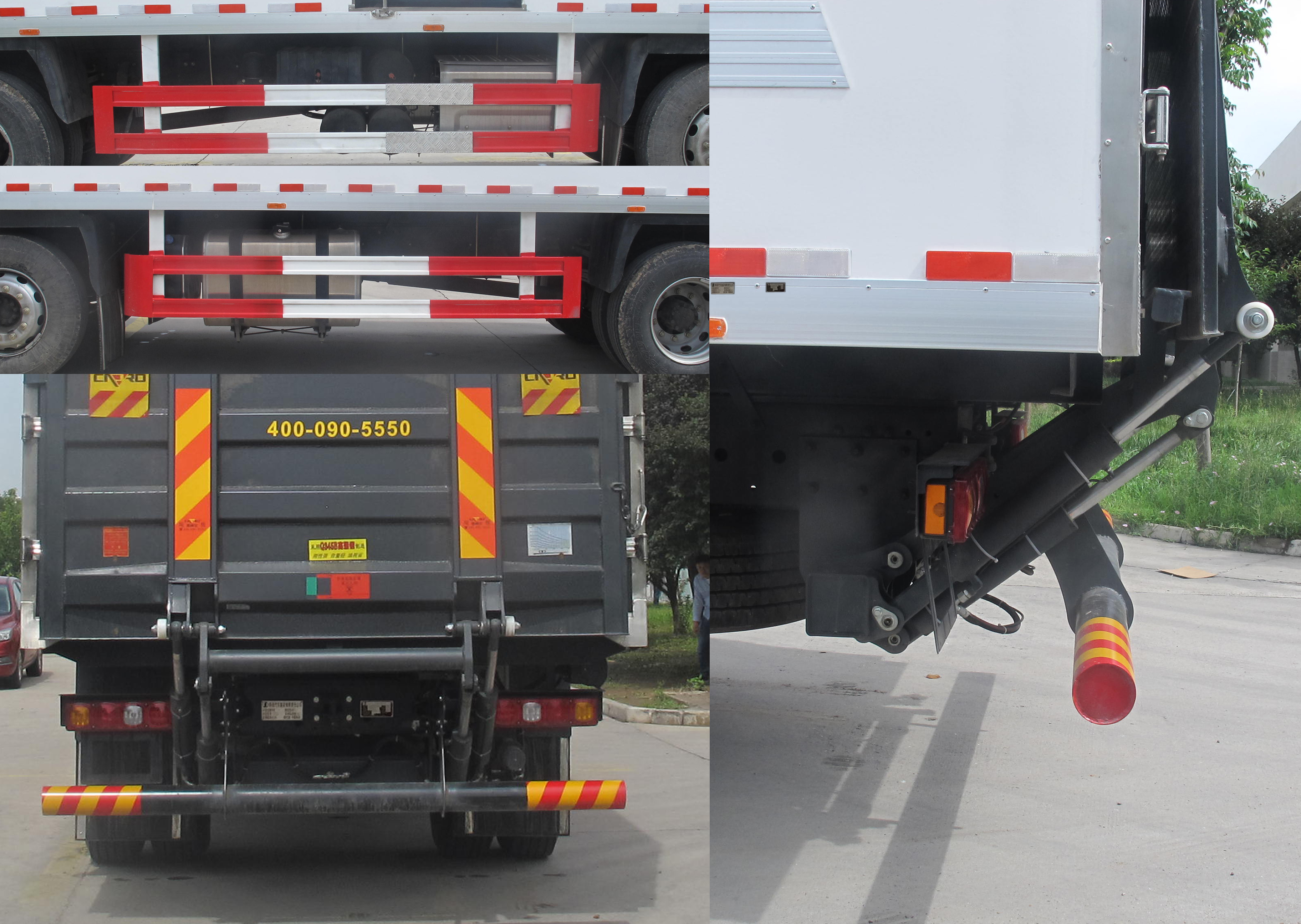 | 1.选装同系列驾驶室和后部组合灯具;2.货箱侧面选装单开门、双开门、联动门、对开门、侧拉门和不开门等不同形式侧门.后门和侧门可选装盒式暗锁或明挂锁,后门可选装四杠四锁结构,顶部封闭,不可开启;选装液压尾板(液压尾板质量为550kg,液压尾板收起时的水平长度为300mm).3.侧后防护所用材料:Q235,连接方式:螺栓连接,选装圆形后防护时,断面宽度(mm):Φ120,选装方形后防护时,断面宽度(mm):50?20;后防护离地高度(mm):430;4.装有带卫星定位功能的行驶记录仪;5.ABS系统生产厂家及型号分别为:西安正昌电子股份有限公司(ZQFB-V).6.装WP7.300E61,WP8.350E61油耗申报值均为32.3L/100km.7,底盘外形尺寸长/整车外形尺寸长/轴距/后悬/货箱栏板内尺寸长之间对应关系为:10025/10515/1800+4600/2590/7900;10875/11315/1800+5000/2990/8700;11600/12000/1800+5400/3275/9400. |