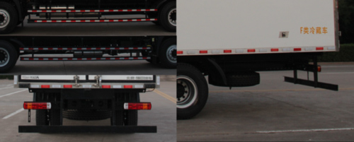 货厢顶部封闭不可开启,侧面及后下部防护装置的所用材料材质为Q235,连接方式为螺栓连接,后部防护装置的断面尺寸为120?0mm,离地高度为500mm.应装具有卫星定位功能的行驶记录仪.选装导流罩.可选装液压尾板,液压尾板质量550kg,收起时水平长度为300mm.选装单侧开门;双侧开门;无侧开门货厢风格.选装同等功率制冷机组,外观形状可不同.ABS型号为CM4XL-4S/4M,生产厂家为广州瑞立科密汽车电子股份有限公司,发动机WP4.6NQ220E50对应油耗值为29.8L/100km. |