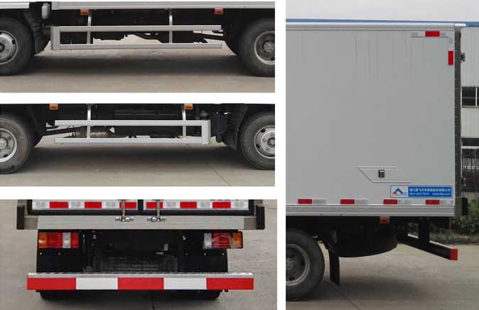 | 车厢顶部封闭,不可开启.可选装其它功率相同制冷机组,可选装底置制冷机组;选装侧门或不装侧门,车厢右侧和左侧均可选装侧门、选装单侧门、双侧门的侧门数量;选装普通侧门、对开侧门、联开侧门、侧拉门等侧门形式;所有选装引起的质量参数变化在3%以内.侧防护材料铝合金或Q235,后下部防护材料Q235, 侧防护和后防护与车辆均采用螺栓连接;后下部防护下边缘离地高度450mm,断面(高120mmX宽75mm). 仅选用4KH1CN5HS 发动机,该发动机净功率为94kW,油耗为15.3; ABS及其控制器型号为:APG3550500A4,生产厂家为:浙江亚太机电股份有限公司. |