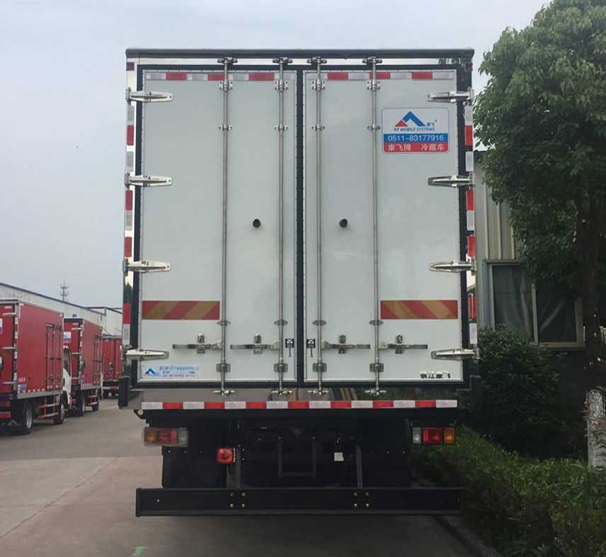 车厢顶部封闭,不可开启.可选装其它功率相同制冷机组; 选装导流罩;窄前保险杠;选装侧门或不装侧门,车厢右侧和左侧均可选装侧门,选装单侧门,双侧门的侧门数量;选装普通侧门,对开侧门,联开侧门,侧拉门等侧门形式,侧门和后门选装明门杠或暗门杠的门锁形式;选装后门单门杠或双门杠; 选装独立制冷机组专用副油箱.所有选装引起的质量参数变化在3%以内.侧防护材料为铝合金或Q235,后防护材料为Q235,连接方式均为螺栓与车体连接,后防护断面尺寸:190?0(mm),离地高度:480mm; 当选用液压尾板时,尾板收起状态的水平长度为290mm,尾板质量为550kg,后下部防护材料Q235,与尾板悬臂螺栓连接,后防护截面为圆形,截面直径为120mm,离地高度:480mm; ABS及控制器型号为:APG3550500H1,生产厂家为:浙江亚太机电股份有限公司.安装具有卫星定位功能的行驶记录仪.发动机净功率为150KW. |