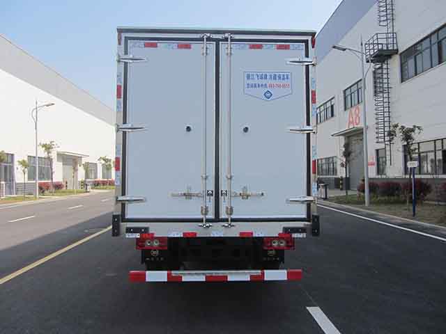 | 可选装联动门,对开门,侧拉门和不开门等不同形式侧门;选装左右侧开门;选装不同门杠形式;选装不同形式后门及不同形式门锁。可选装其它厂家功率相当的制冷机组,可选装底置机组,选装独立机组时可安装副油箱。选装隔板或小冷藏箱,实现车内多温功能。可选装轻质后部液压尾板,收起状态的水平长度280mm,尾板总质量为350kg。厢体顶部封闭,不可开启。ABS厂家:威伯科汽车控制系统(中国)有限公司,ABS型号44600XXXX0。发动机净功率为112kw。侧面及后下部防护装置采用Q235材质焊接而成,通过螺栓连接方式与车体相连。后部防护装置断面尺寸为60mm?05mm或φ110,离地高度为490mm。 |