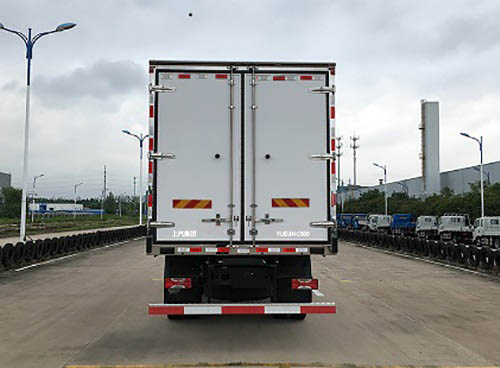1.选装导流罩;2.选装排半驾驶室;3.随底盘选择不装遮阳罩,车厢顶部封闭,不可开启;4.可选装功率相当的其它型号的制冷机组,S733/MK658/Ck799劲达技术(河源)有限公司,SV800/T600/英格索兰(中国)投资有限公司,S750/C700/开利运输空调冷冻(中国)有限公司,侧门为选装件,车厢右侧和左侧均可选装侧门,选装单侧门或双侧门;选装普通侧门,对开侧门,联开侧门,侧拉门等侧门形式,侧门和后门选装明门杠或暗门杠的门锁;5.SC4H180Q5发动机最大净功率为129kw;6.ABS型号:VIE ABS-II,ABS生产企业:浙江万安科技股份有限公司;6.侧面及后下部防护装置材料为Q235,连接方式为螺栓连接,后部防护装置断面尺寸:120mm(断面高度)?0mm(断面宽度),离地高度为495mm. 冷藏车类别:F类;7.可选装外观新标识及格栅造型;8.可选装限速装置,限制最高车速90km/h. |