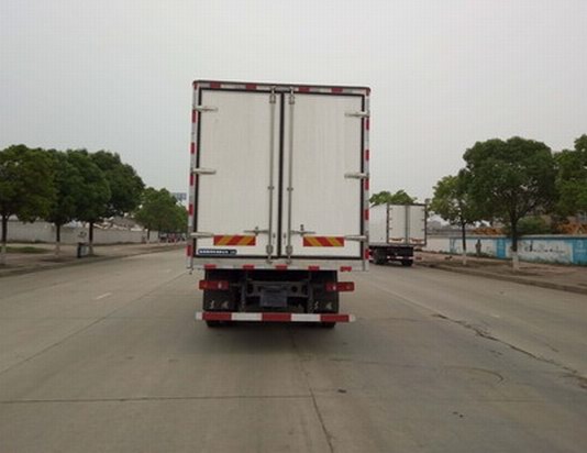 随底盘选装驾驶室;驾驶室卧铺侧窗选装装饰板,驾驶室前围选装扰流板,选装前面罩,前雾灯为选装件,驾驶室顶部装饰灯为选装件,选装尾板,尾板质量为550kg,尾板收起状态时的水平长度为295mm;选装尾板时仅选用断面尺寸Φ121的后防护,后防护材质:Q235,连接方式:焊接,离地高度470mm,可选装功率相当的其它型号的制冷机组;厢体顶部封闭,不可开启,侧面选装开门和不开门;侧防护:材质Q235,螺栓连接;后下防护:材质Q235,螺栓连接,断面尺寸120X60mm,离地高度460;安装具有卫星定位功能的行驶记录仪.装有ABS,ABS型号及生产厂家:3631010-C2000/东科克诺尔商用车制动系统(十堰)有限公司,J ABS/焦作博瑞克控制技术有限公司.总长/轴距/后悬对应关系如下: 1:9100/5000/(2670,2735); 2:8660/4700/2530;3:8150/4700/2020.随底盘选装限速装置,限速89km/h. |