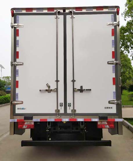 | 1、ABS系统型号:APG3550500A,ABS系统生产企业:浙江亚太机电股份有限公司;2、储能装置种类/生产企业:磷酸铁锂蓄电池/宁德时代新能源科技股份有限公司,电池单体型号:CB220,单体标称电压:3.22V,单体额定容量:173Ah,电池组总成标称电压:618.24V;3、驱动电机类型:永磁同步电机,型号:TZ260XSD81,额定功率:60kW,峰值功率:120kW,驱动电机生产企业:厦门捷欧大地和新能源有限公司,电机控制器型号:KTZ54X040S105I;4、后下部防护装置材料:Q235,与底盘连接方式:螺栓连接,后防护断面尺寸:100mm?5mm,离地高度:416mm;侧防护采用裙边结构,侧防护材料为玻璃钢蜂窝板,连接方式为螺栓连接;5、车厢顶部封闭,不可开启;6、选装不同功率的制冷机组。选装不同尺寸的裙边结构。选装裙边式侧防护时右后侧裙边上可选装开孔用于备胎拆卸。7、选装右侧不带侧开门货箱外观。 |