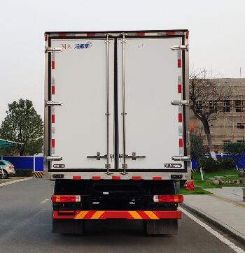 车厢顶部封闭,不可开启.仅选用底盘WP4.1NQ190E50发动机,发动机最大净功率为:WP4.1NQ190E50(136kw).选装导流罩.可选装功率相当的其它型号的制冷机组.选装不开门货箱.选装肉挂结构.侧防护材质为R13钢,后下部防护装置材质为Q325,均采用螺栓连接,后部防护断面尺寸135?0mm,后部防护离地高度490mm.油耗值(L/100km)23.5对应发动机WP4.1NQ190E50.ABS防抱死制动系统生产厂家/型号:浙江万安科技股份有限公司/VIE ABS-II.前轴选装盘式制动器.选装限速装置,限速89km/h.安装具有卫星定位功能的行驶记录仪. |