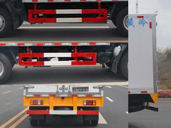 | 1.车厢顶部封闭,不可开启;2.厢体右侧选装不带侧开门整车宽度为2150mm,选装液压升降尾板,液压尾板收起水平长度为295mm;3.ABS及其控制器型号为:APG3550500A4,生产厂家为:浙江亚太机电股份有限公司;4. 侧面防护装置材料:Q235,连接方式:焊接连接;后下部防护装置材料:Q235,连接方式:焊接连接,断面尺寸:100mm?0mm,离地高度:470mm.5.4KH1CN5HS发动机油耗值为12.92L/100km. |