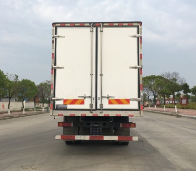选装侧窗,选装前雾灯,驾驶室顶部选装导流罩;侧防护:材质Q235,螺栓连接,后下防护:材质Q235,螺栓连接,断面尺寸120?0mm,离地高度460mm;厢体顶部封闭,不可开启,侧面选装开门和不开门;选装液压尾板,尾板收起状态时的水平长度为295mm;安装具有卫星定位功能的行驶记录仪;ABS型号:ABS 8,生产厂家:东科克诺尔商用车制动系统(十堰)有限公司;发动机ISD230 62,ISD180 62对应的油耗值为25.9L/100km.可选装其它厂家功率相当的制冷机组.随底盘选装限速装置,限速89km/h. |