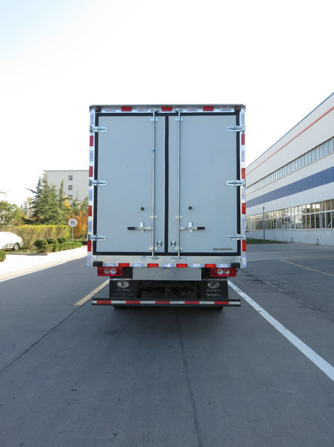 | 厢体顶部封闭,不可开启.可选装取消侧开门.可选装同等功率的制冷机组.侧面防护装置材料为冷板B-2.0,后下部防护装置材料为矩型管20-D-100?0?.均为螺栓连接.后部防护装置截面尺寸100mm?0mm,离地高度450mm.可选装液压尾板,不同尾板收起状态下对应水平长度为295mm,350mm,选装液压尾板时,整备质量为5800kg,载质量为3995kg,整车长为6995mm,7345mm;ABS型号为ABS-E,生产企业为威伯科汽车控制系统(中国)有限公司;ABS系统型号:ABS-VI.E;生产企业:广州瑞立科密汽车电子股份有限公司;选装新保险杠,随底盘选装前围及灯具. |