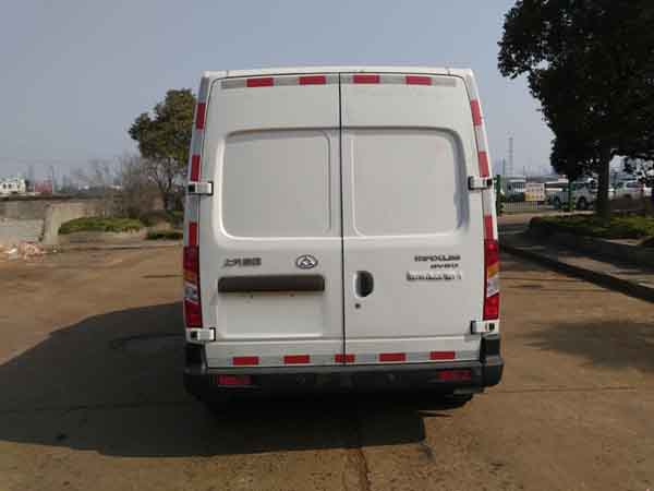 该车型选装:一体式后踏步(整车长度5785mm,后悬1070mm,离去角21?、后踏步(选装后踏步长度5910mm,后悬1195mm,离去角14?、副驾驶双人座椅、双侧移门、2种冷凝器外观、侧踏步、牌照装饰板、轮圈、不镀铬水箱面罩、前围、前雾灯、选装前后标识、选装充电口外观.该车型可选不装:侧移门.驾驶区与货舱有有效隔离.ABS生产企业:博世汽车部件(苏州)有限公司,ABS型号:ABS 9.0.动力电池为锰酸锂电池,生产企业荣盛盟固利新能源科技有限公司,驱动电机额定功率为60kW,峰值功率为110kW. |