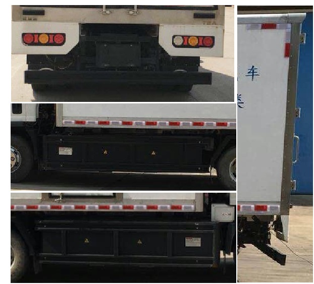 | 厢体顶部封闭,不可开启。侧后防护采用螺栓连接;后防护:断面尺寸为40mm?22mm,离地高度为398mm,材料为钢材质,选装铝材质后防护;侧防护材料为铝材质;选装车门、制冷机组、后部灯具,前保险杠、翼子板、前格栅、前围面罩、前雾灯、无前雾灯、轮辋、侧防护外观;动力蓄电池种类:磷酸铁锂蓄电池,生产企业:深圳市比亚迪锂电池有限公司。驱动电机类型:永磁同步电机,额定功率60kW,峰值功率100kW,生产企业:上海大郡动力控制技术有限公司。ABS系统生产企业:芜湖伯特利电子控制系统有限公司,ABS系统型号:BTL。车辆使用区域:可全国销售 |