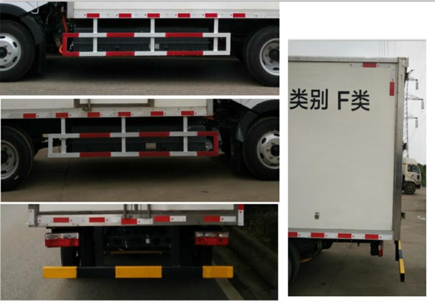 | 1,车厢顶部封闭不可开启;2,侧、后防护装置材料为Q235,与车架采用螺栓连接,后下部防护装置断面尺寸(mm):100?0,离地高度:450mm;3,整车外形高度/货箱内高对应关系为(mm):3020/1900,3070/1950,整车外形宽度/货箱内宽对应关系为(mm):2070/1900,2200/2030,多个尺寸差异导致的质量差异在3%内;4,电池种类/型号/生产企业: 镍钴锰三元锂离子蓄电池/26650HC2-5.0Ah/大连中比动力电池有限公司;电机类型/型号/生产企业: 永磁同步/ TZ230XS505 /中企超控科技有限公司;电动汽车驱动电机额定/峰值功率:55/120kW;5,ABS型号/生产厂家:48610X6XX0/西安卡迈电子科技有限公司或YF8/武汉元丰汽车电控系统有限公司;6, 可选装不同品牌不同外观功率相近的制冷机组,当选装相似功率的制冷机组时外置冷凝器的外观形状可不相同,见选装照片。 |
