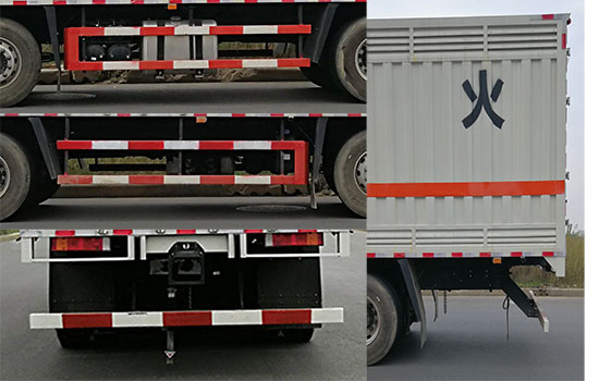 1、该车主要用于运输具有独立容器(瓶)包装的:含废矿物油,含铬废物,含铜废物,含镍废物,类项号:9,危险废物编号:HW08,HW21,HW22,HW46;2、选装平顶驾驶室,选装驾驶室前面罩,高顶驾驶室顶部气喇叭为选装件,驾驶室前角扰流板为选装件,蓄电池及储气筒可选装右置;3、厢体顶部封闭不可开启,厢体选装平面和瓦楞板结构,厢体可选装开侧门,不开侧门,选装后门结构,选装侧门型式及位置,厢体侧面板选装开百叶窗;4、侧后防护装置材质均为Q235,连接方式均为螺栓连接,后防护装置的断面尺寸(长卓?mm:120?0,离地高度:420mm;5、安装具有卫星定位功能的行驶记录仪;6、 ABS型号/生产厂家:ABS 8/东科克诺尔商用车制动系统(十堰)有限公司;7、排气管前置,前轴装备盘式制动器,子午线轮胎,装备限速装置,限速80km/h;8、发动机DDi75E350-60对应的油耗值为38.1L/100km;9、发动机DDi75E350-60的最大净功率为252kw. 该车后轴为采用空气悬架.选装液压尾板,收起状态的水平长度为280mm,液压尾板质量为550kg;该车可选装车载ETC装置;车辆转向轮安装保胎应急防护装置; |
