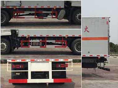 该车适用于运输危险品。厢体顶部封闭,不可开启。该车主要用于运输具有独立容器(瓶)包装的介质类项号:8。安全装置为导静电带,用于防止静电。防护材料:Q235B碳钢,连接方式:左右侧面及后下部防护均采用焊接连接,后部防护断面尺寸(mm):140?0,后部防护离地高度(mm):360。仅采用底盘子午线轮胎和带ABS的底盘,该车前轮安装盘式制动器,前置排气管,装配限速装置,限速80km/h。安装带有卫星定位功能的行驶记录仪。ABS型号/生产厂家:3631010-C2000/东科克诺尔商用车制动系统(十堰)有限公司。整车长度/轴距/前悬/后悬的对应关系为(mm):9000/5000/1430/2570,8600/4700/1430/2470。 随底盘选装驾驶室前面罩,选装侧窗玻璃;驾驶室顶部中间三个装饰灯为选装件;前雾灯为选装件;驾驶室前脸扰流罩为选装件。转向轮安装轮胎爆胎应急防护装置,该车后轴为采用空气悬架。随底盘扩展驾驶室不带前雾灯照片。 |