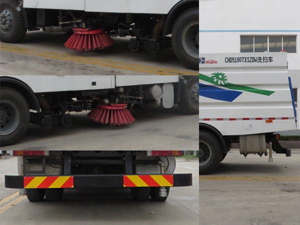 该车辆为单发洗扫车,无副发动机.仅选用5000mm轴距.随底盘选装驾驶室,选装翼子板,选装遮阳罩,选装玻璃后风窗.选装壁流式颗粒捕捉器.选装滚塑水箱外部加强护板.ABS系统型号为4460046300,生产企业为威伯科汽车控制系统(中国)有限公司.车辆侧面防护装置由专用装置扫刷、吸盘代替;后下部防护装置的材料材质为Q235钢,连接方式为螺栓连接,断面尺寸(mm)为155?0,其最大离地高度为455mm.