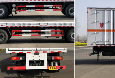 该车为危险品运输车.该车顶部封闭,不可开启.随底盘选装驾驶室.运输具有独立容器(瓶)包装的氨溶液、硫酸、酸性电池液、碱性电池液、硫酸废液、碱石灰、甲醛溶液、乙酸酐、固态氟化铬、氟化铬溶液、固态氢氧化钠、氢氧化钠溶液,类项号:8.侧、后防护装置材料:Q235,连接方式均为焊接,后防护截面高120mm,截面宽50mm,后防护下边缘离地高490mm.选装侧面不开门,侧开门型式及位置;厢体选装开百叶窗,选装后部样式.仅采用排气管前置,子午胎,限速装置,辅助制动装置和前盘制动器的底盘;限速80km/h.安装具有卫星定位功能的行驶记录仪;ABS型号/企业:ABS-E 4S/4M/威伯科汽车控制系统(中国)有限公司,CM4XL-4S/4M/广州瑞立科密汽车电子股份有限公司.发动机型号及油耗值(L/100km)对应关系为: YCS06270-60/33.48.后轴仅采用空气悬架.转向轴已随底盘安装防爆胎装置. |
