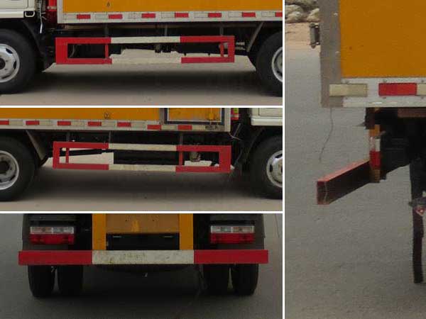 随底盘选装驾驶室;厢体顶部封闭,不可开启;运输具有独立容器(瓶)包装的:含铜废物,含镍废物,2008年国家环境保护部,国家发展和改革委员会令第1号发布的《国家危险废物名录》中危险废物,类项号:9,危险货物编号:HW22,HW46;该车为危险品货物运输车;厢体选装瓦楞板结构,厢体侧面选装开门型式及位置或不带侧开门,选装百叶窗,选装液压升降尾板(收起状态水平长度为290mm);仅采用CY4BK551,YC4FA115-50,D28D11-5DA发动机,所有发动机对应油耗值均为12.5L/100km;仅采用前轮盘式制动器,前置排气管,子午线轮胎,限速装置的底盘,限速80km/h;该车安装具有卫星定位功能的行驶记录仪;ABS厂家及型号:襄阳东风隆诚机械有限责任公司/ABS/ASR-24V-4S/4M;侧面防护及后下部防护装置材料材质:Q235,连接方式:焊接加螺栓连接;后下部防护装置断面尺寸(宽赘?:50?00(mm),离地高度:490mm. |