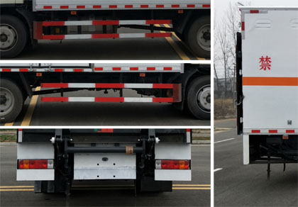 该车为危险品运输车.该车顶部封闭,不可开启.随底盘选装驾驶室,选装后部灯具.仅运输具有独立容器(瓶)包装的易燃液体,危险品类项号:3.后部安装液压尾板,液压尾板收起水平长度300mm,尾板重量为450kg,侧防护材料:Q235,连接方式:焊接连接,后防护为裙边结构,后防护下边缘离地高为480mm;选装后部不带尾板样式时侧、后防护装置材料:Q235,连接方式均为焊接,后防护截面高100mm,截面宽50mm,下边缘离地高480mm.选装侧开门型式及位置;选装侧开门时整车宽度为2480mm.选装不开侧门时整车宽度为2430mm.厢体选装开百叶窗,选装后部样式.仅采用排气管前置,子午胎,限速装置,辅助制动装置和前盘制动器的底盘;限速80km/h.安装具有卫星定位功能的行驶记录仪;ABS防抱死制动系统生产厂家/型号:1.广州瑞立科密汽车电子股份有限公司/CM4XL-4S/4M;2.浙江万安科技股份有限公司/VIE ABS-II.发动机型号及油耗值(L/100km)对应关系为: WP3NQ160E61/20.8.转向轴已随底盘安装防爆胎装置.选装ETC车载装置. |