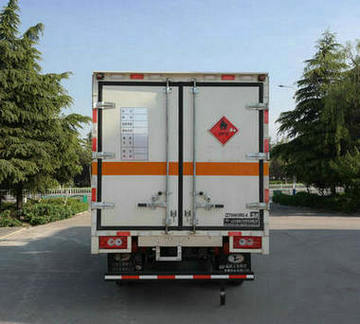 厢体顶部封闭,不可开启;厢体可选装无侧门;选装平板厢体;选装多种形式的侧开门;选装前通风孔;选装不同形式的瓦楞工艺厢体;可选装不燃气体标志牌;后部选装百页窗;车身侧面及后部粘贴橙色反光标识和易燃气体菱形标示;该车为危险货物运输车;在车体后部设置安全标示;运输具有独立容器包装的易燃气体,运送危险品类项号:2.1;2.2;该车安装具有卫星定位功能的行驶记录仪;侧防护装置材料:Q235,与车辆连接方式为螺栓连接,后防护装置材料:Q235,与车辆连接方式为螺栓连接;后防护断面宽100?0mm,离地高370mm;ABS系统型号:ABS-VI.E;生产企业:广州瑞立科密汽车电子股份有限公司.ABS系统型号:ABS-E;生产企业:威伯科汽车控制系统(中国)有限公司;ABS系统型号:YF8;生产企业:武汉元丰汽车电控系统有限公司.发动机Q23-115C60最大净功率为82kw;转向轮安装爆胎应急防护装置;仅用子午线轮胎,仅用底盘限速装置及前盘制动;仅选用底盘的前置排气管结构;油耗对应关系:Q23-115C60(11.40);厢体前后选装百叶窗;该车型可选装ETC车载装置 |