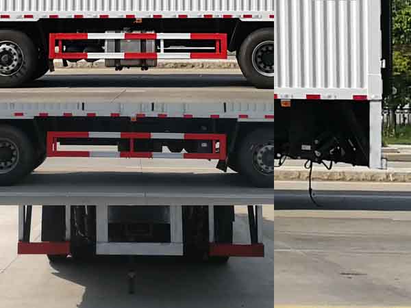 1、该车适用于运输危险品。厢体顶部封闭,不可开启。运输具有独立容器包装的易燃气体及运输具有独立容器包装的非易燃无毒气体。运送危险品类项号:2.1,2.2。液压升降尾板收起状态水平长度为290mm,尾板质量为550kg。2、侧,后防护材料均为Q235,螺栓连接;后防护截面尺寸120?0mm,下边缘离地高490mm。选装后部无液压尾板。3、随底盘选装平顶驾驶室;选装驾驶室前面罩;高顶驾驶室顶部气喇叭为选装件;驾驶室前角扰流板为选装件。仅选装驾驶室顶部“东风商用车”企业标识。选用排气管前置、限速装置(限速80km/h)、前轮盘式制动及子午线轮胎的底盘;安装带卫星定位功能的行驶记录仪。ABS型号/生产厂家:ABS 8/东科克诺尔商用车制动系统(十堰)有限公司。发动机/油耗值(L/100km)对应关系为:DDi75E350-60/38.1。后轴采用空气悬架,转向轮装备轮胎爆胎应急防护装置。该车型可选装ETC车载装置. |
