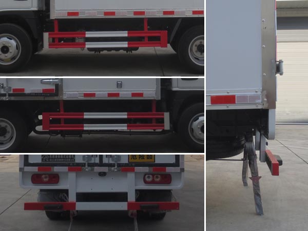 厢体顶部封闭,不可开启;随底盘选装驾驶室;仅采用底盘2650mm轴距;厢体选装瓦楞板结构,厢体侧面选装开门型式及位置或不带侧开门,选装百叶窗;运输介质类项号:3;该车为危险品货物运输车;仅采用前轮盘式制动器,前置排气管,子午线轮胎,限速装置的底盘,限速80km/h;转向轮安装爆胎应急防护装置;发动机Q23-95E60对应油耗申报值为11.4L/100km;该车安装具有卫星定位功能的行驶记录仪;ABS控制器型号/生产厂家:YF8/武汉元丰汽车电控系统有限公司;侧面防护及后下部防护装置材料材质:Q235,连接方式:焊接加螺栓连接;后下部防护装置断面尺寸(宽赘?:50?00(mm),离地高度:360mm;该车选装ETC车载装置. |