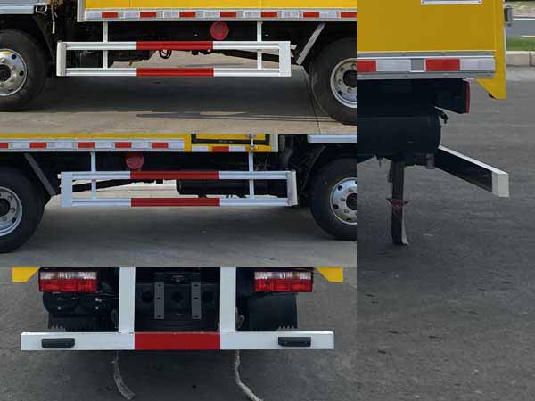 1、该车适用于运输危险品。厢体顶部封闭,不可开启。运输具有独立容器包装的易燃气体及运输具有独立容器包装的非易燃无毒气体。运送危险品类项号:2.1,2.2。2、侧,后防护材料均为Q235,侧防护螺栓连接;后防护焊接,截面尺寸100?0mm,下边缘离地高460mm。3、随底盘选装前面罩,前保险杠,前组合灯具。仅选用排气管前置、限速装置(限速80km/h)、前轮盘式制动及子午线轮胎的底盘,安装带有卫星定位功能的行驶记录仪。ABS厂家及型号:襄阳东风隆诚机械有限责任公司/ABS/ASR-24V-4S/4M。发动机/油耗值(L/100km)对应关系为:CY4BK461/16.2,CY4BK161/16.2,YCY24140-60/16.2,D20TCIF1/16.2,D25TCIF1/16.2,CA4DB1-11E6/16.2,CA4DB1-13E6/16.2,CY4BK361/16.2,Q23-115E60/14.5,Q28-130E60/14.9.转向轮安装轮胎爆胎应急防护装置,该车型可选装ETC车载装置. |